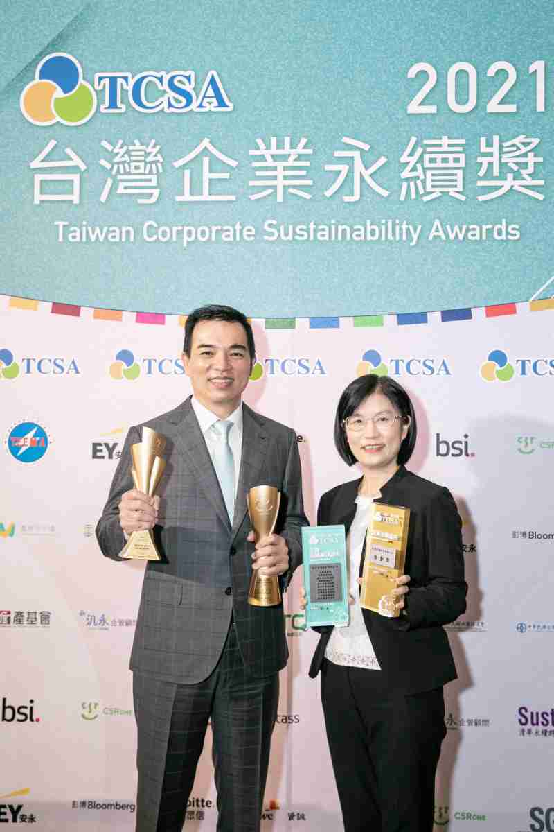 达在台湾永续奖所评比环境、、社会、、治理等各面向的永续绩效均获高度肯定 (左:尊龙z6光电总经理暨营运长柯富仁,,,,右:尊龙z6光电永续长古秀华)