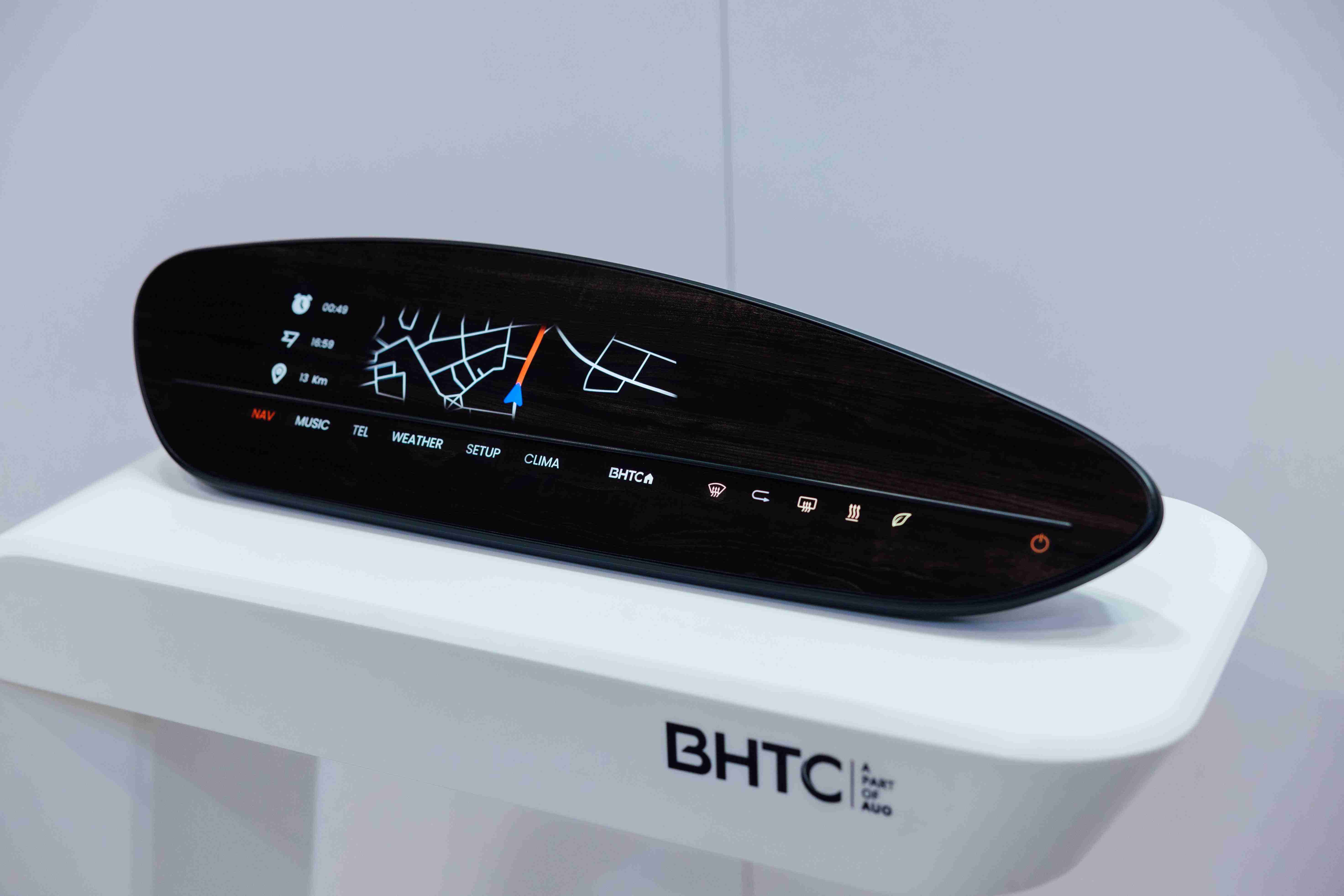 BHTC的木纹车用显示器(Display Behind Wood)将无缝木质表面与显示器结合后,,,,可以融入车内设计中,,,提供驾驶优质的视觉效果,,加上其无边框的设计和亮度调控,,创造更优质的车内体验。。