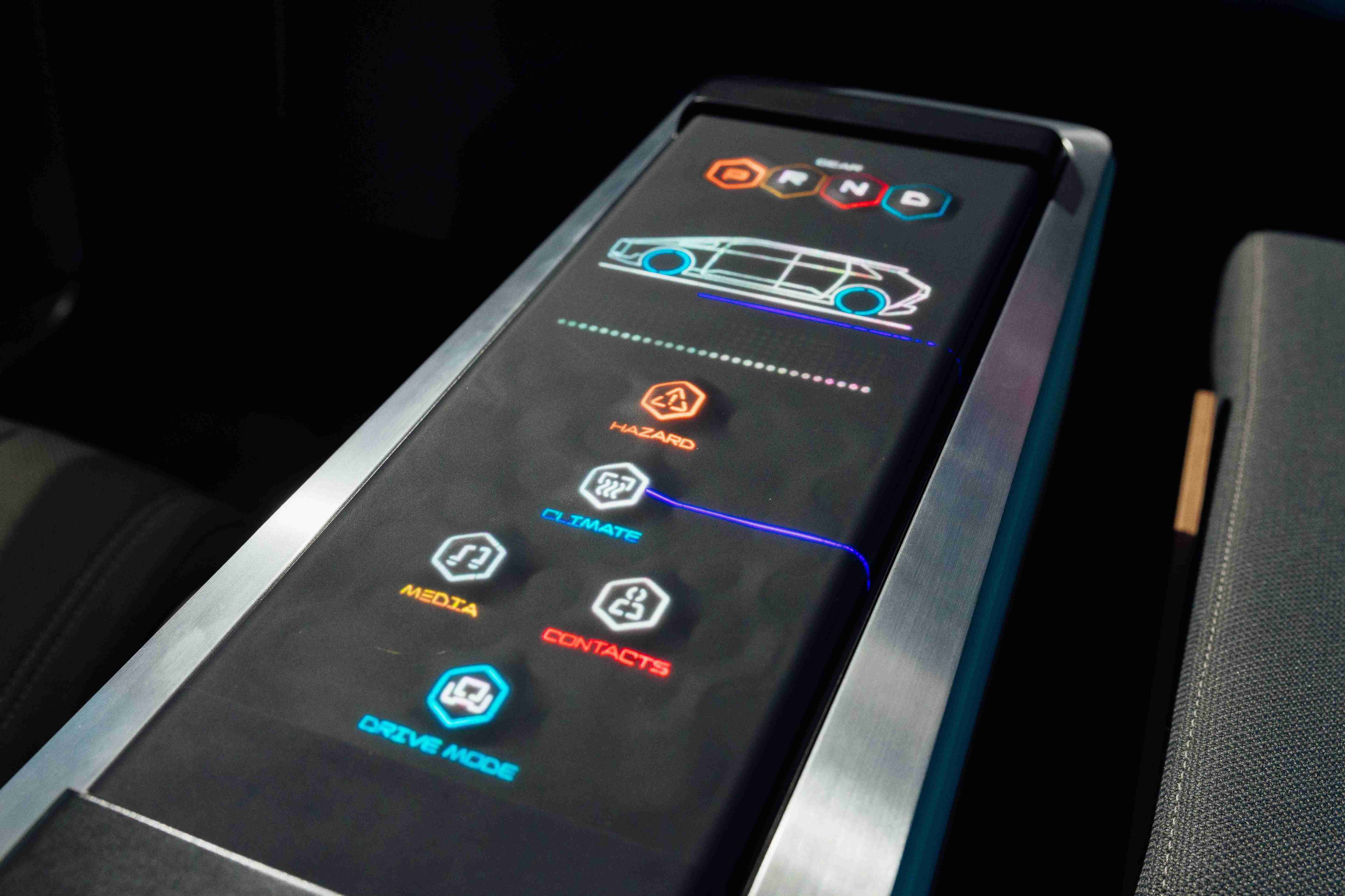 多变形态中控显示(Morphing Center Control)拥有动态变化的表面,,平时常态显示车辆功能,,进一步操作时,,则会隆起成为3D 按钮,,,并在触控时以震动回馈,,以精细的操作开创人机互动新境界。。。。