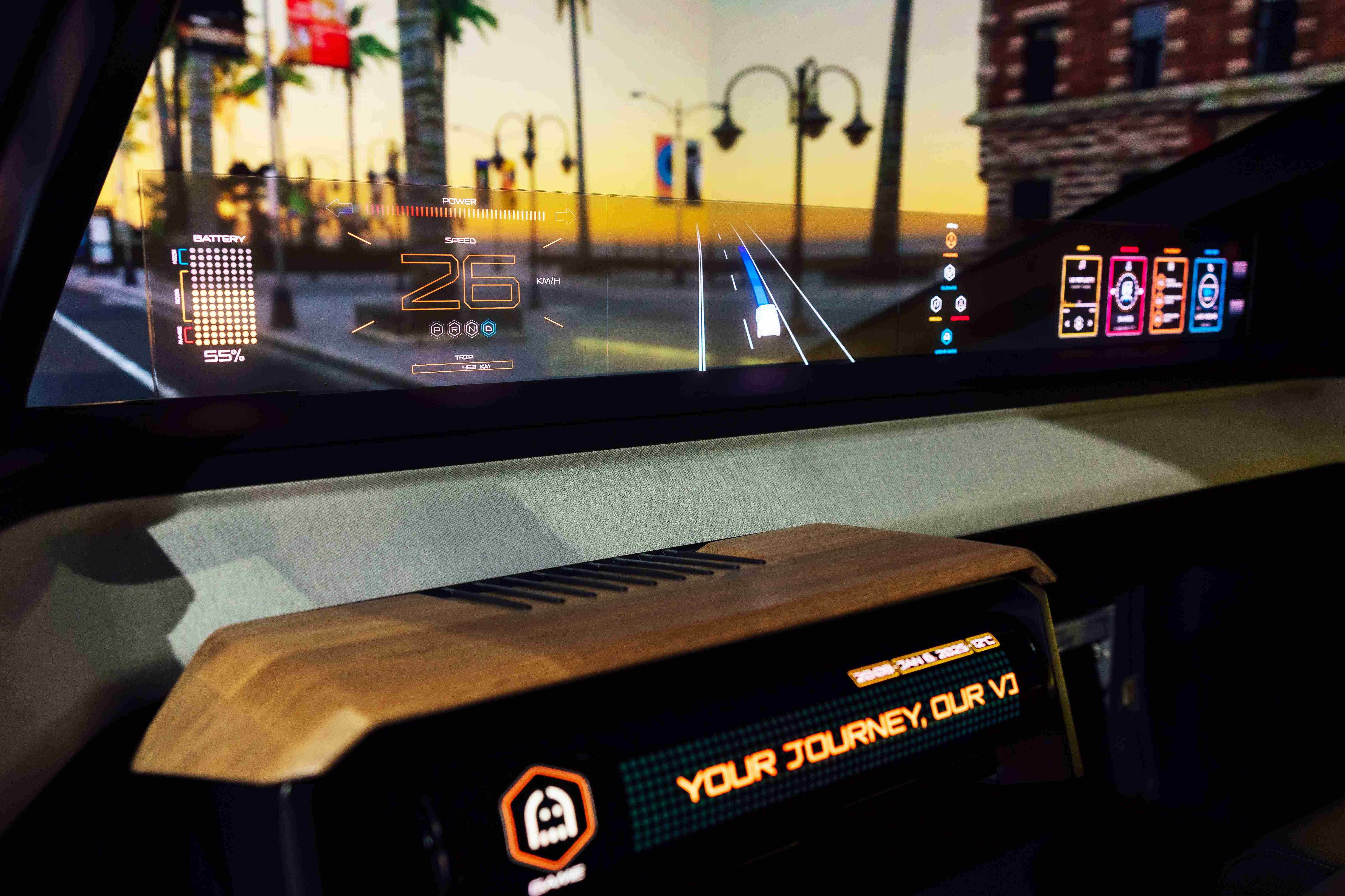 幻境全景天幕(Virtual Sky Canopy)将无缝拼接大型化的透明Micro LED显示器融入至天窗,,,带来沉浸式体验,,,,将人机介面扩展至整个座舱。。