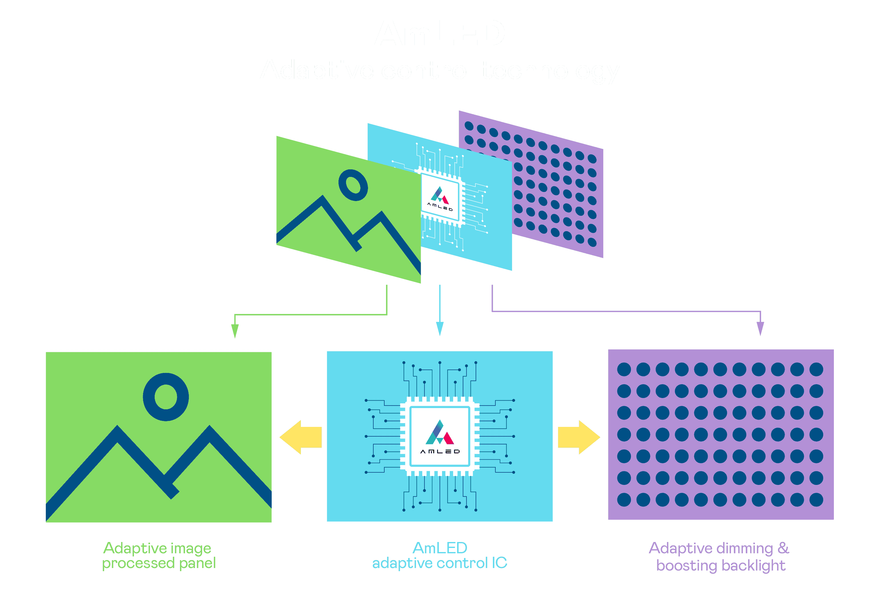 AmLED 具备更省电与低蓝光特性。。。。与一般的 LED 背光显示技术相比,,,由于 AmLED 常时处于局部调光状态,,,,其功耗仅有前者的 50% 左右,,同时 AmLED 还具备低蓝光特性,,,,满足长时间使用的护眼需求。。。。
